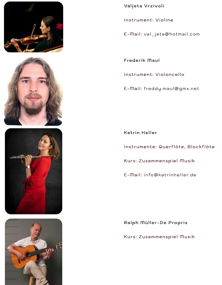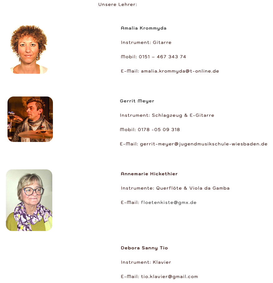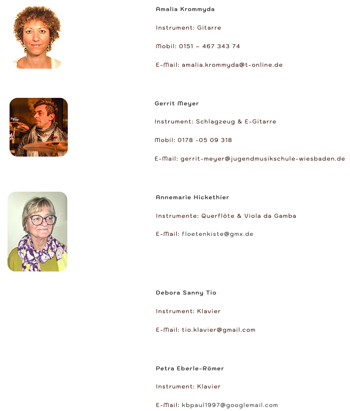 Als gemeinnützige Einrichtung zur Förderung der musikalischen Jugend- und Laienbildung bieten wir in verschiedenen Schulen in Stadtgebiet und Vororten Musikunterricht für Kinder ab 3 Jahren bis hin zum Erwachsenenalter an.